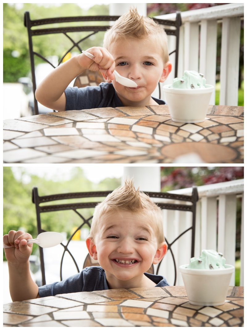 Random photo of my son decided to not try to swallow the chocolate in mouth from his York peppermint patty